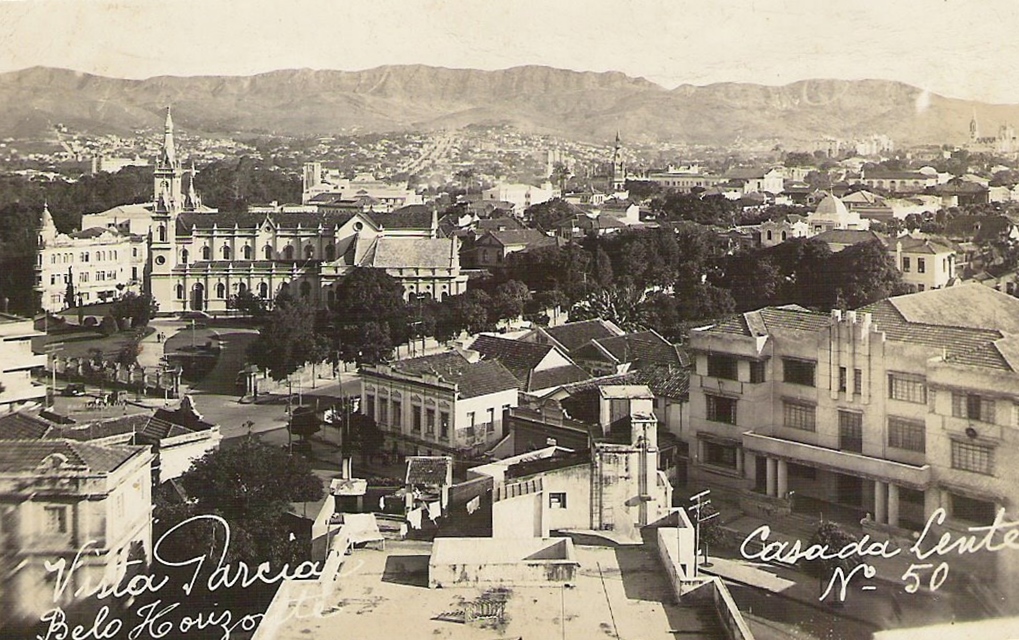 Foto antiga de Belo Horizonte, com a matriz já pronta (à esquerda)