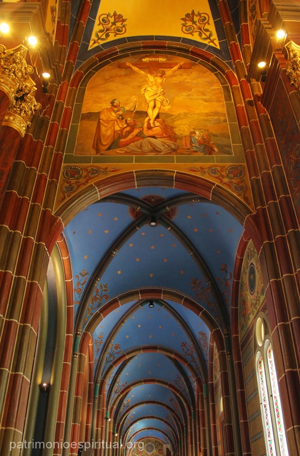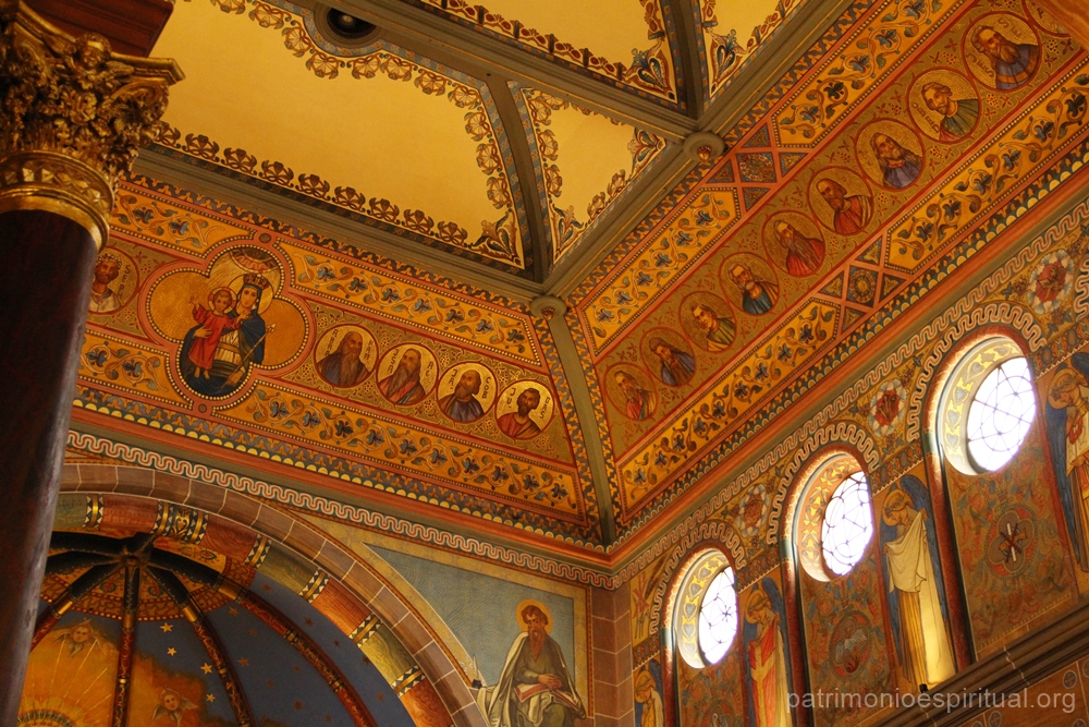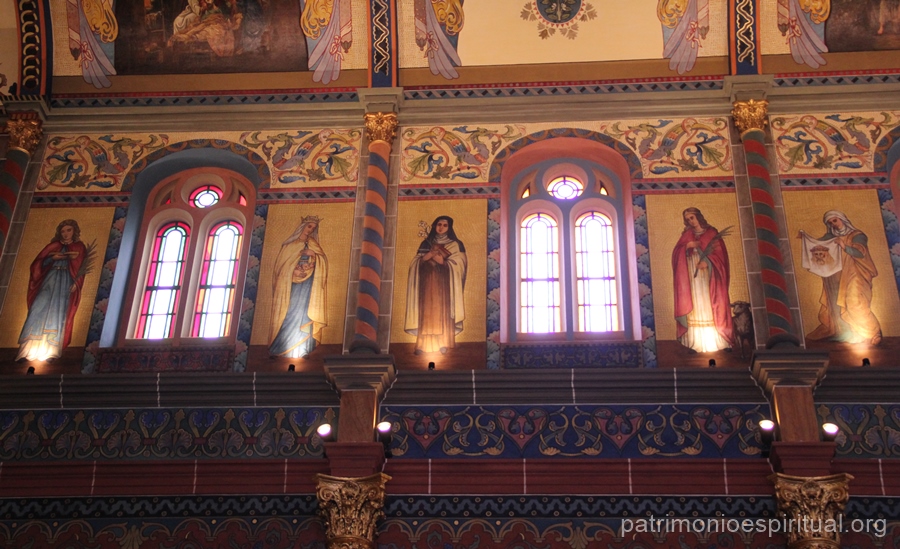 Também nas paredes da nave central estão retratados diversos santos da história da Igreja, dividido por alas – do lado direito as mulheres, e do lado esquerdo os homens.