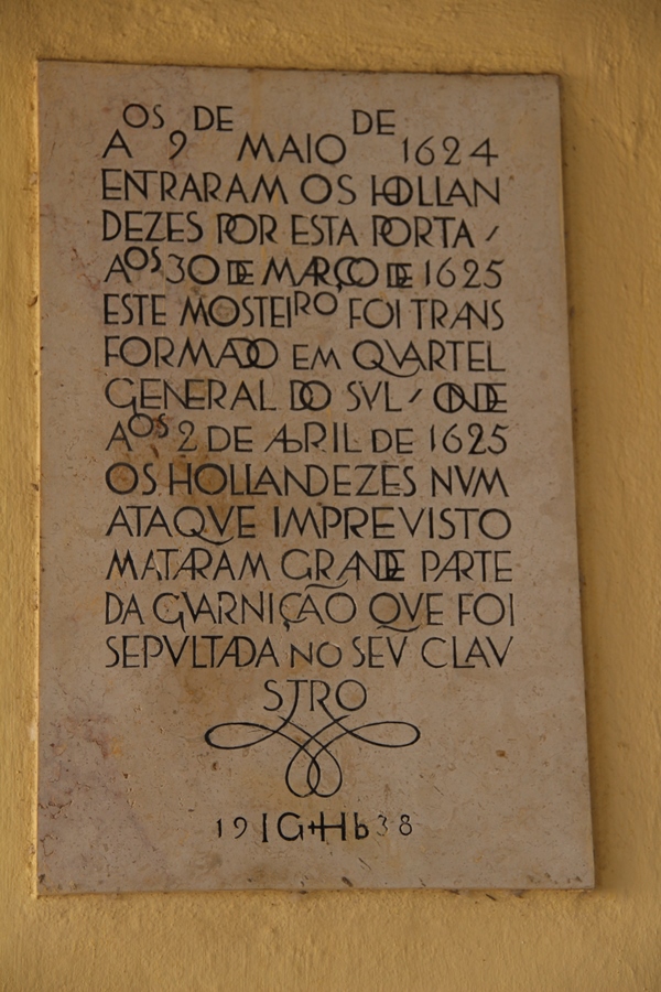 Placas em memória de embates ocorridos no mosteiro, durante a invasão holandesa de 1624