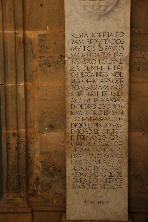Placas em memória de embates ocorridos no mosteiro, durante a invasão holandesa de 1624