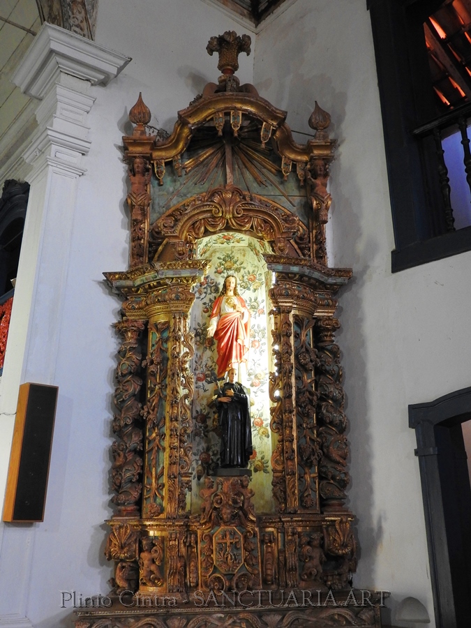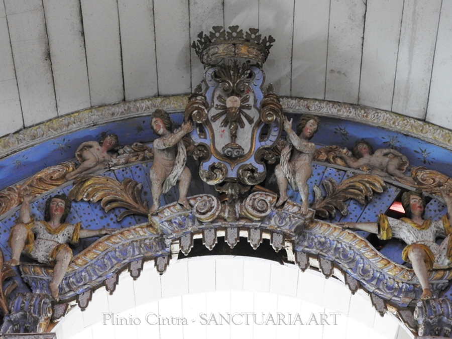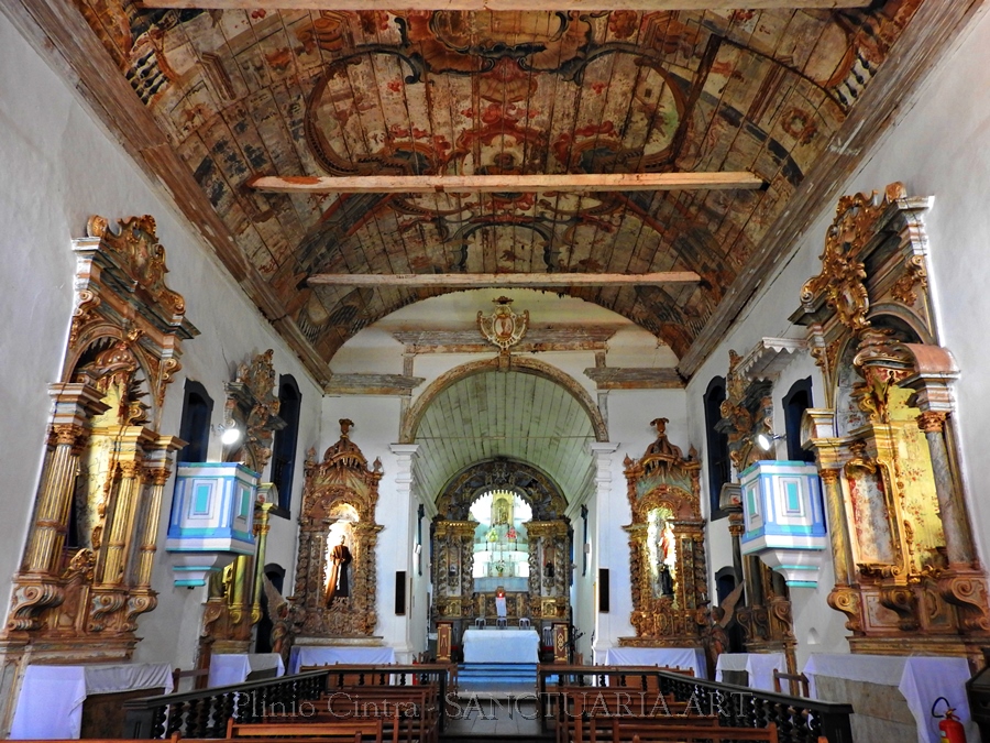 Sua estrutura é em madeira, adobe e taipa, com sete altares policromados, e forro em formato de abóbada de berço.