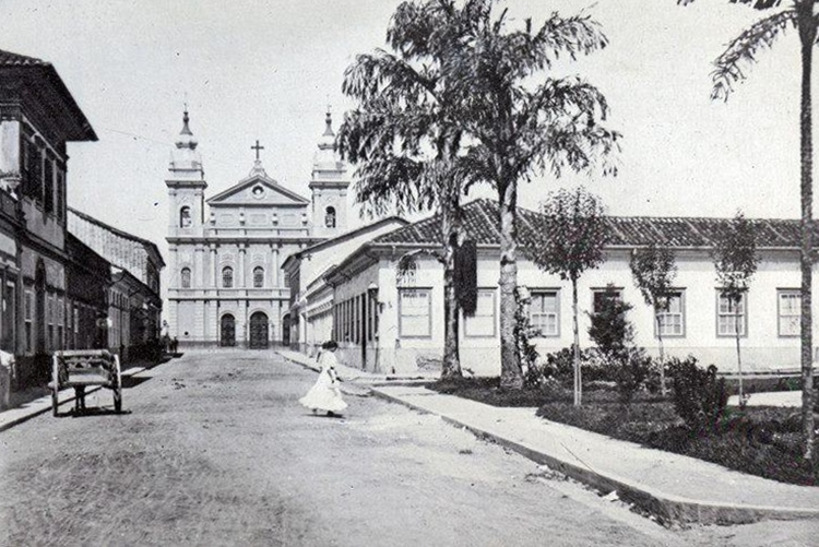 Acima, a igreja e seu entorno em fins do século XIX, e abaixo, na atualidade.