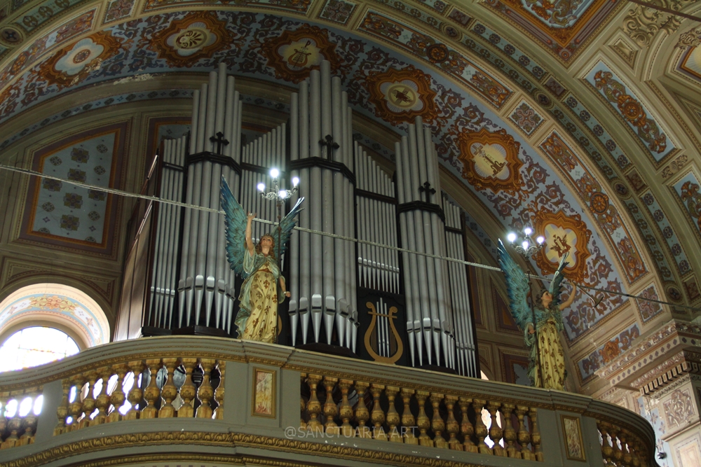 Acima, retábulo com vitral, e abaixo o órgão inaugurado em 1964, de autoria do mestre alemão Gustavo Weissemrieder.