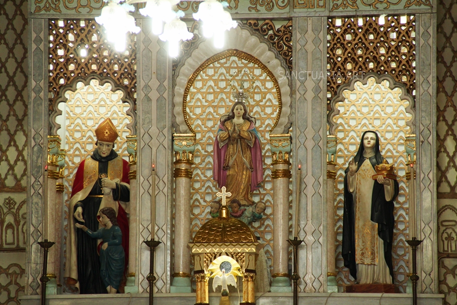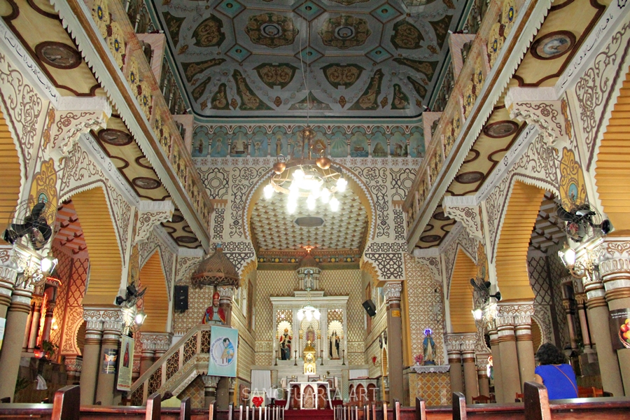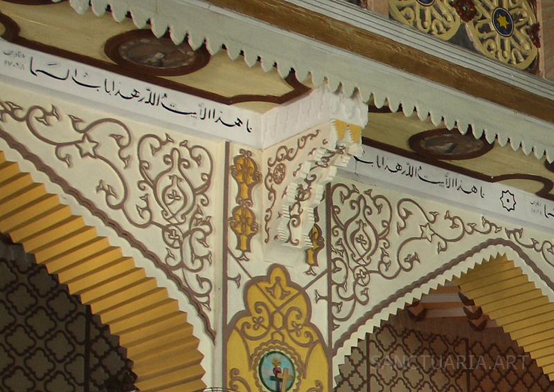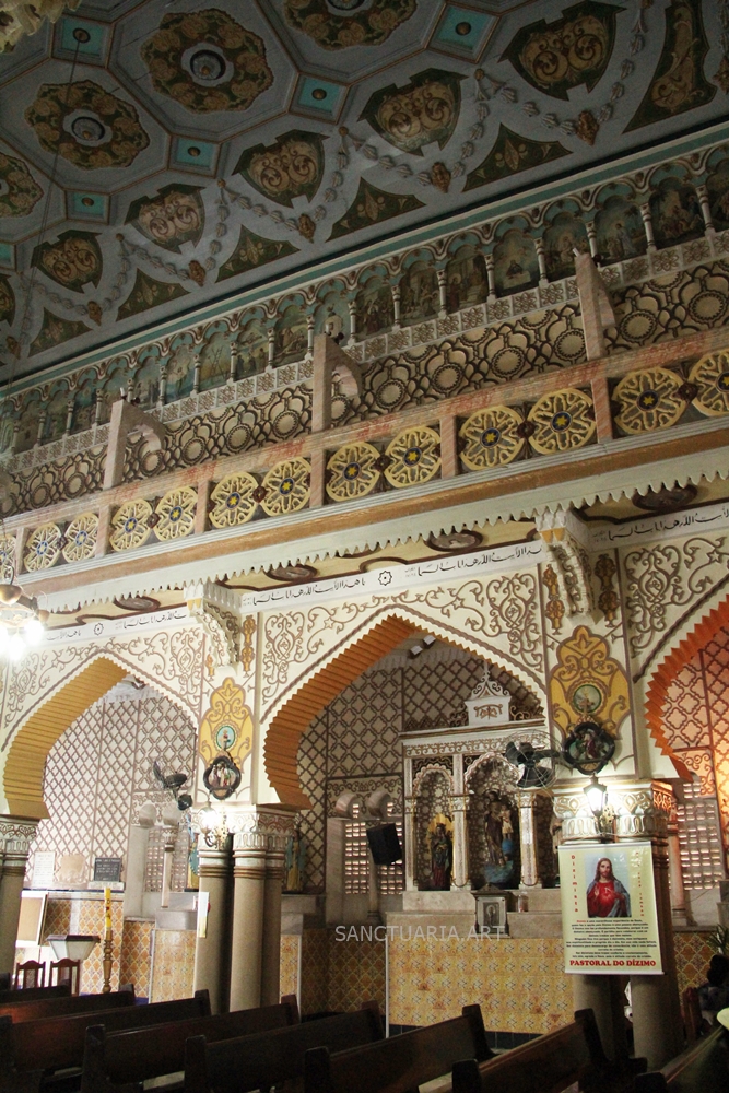 Porém, no interior ela foi inteiramente feita no estilo neomourisco, com ampla decoração arabesca, e inclusive inclusão de palavras escritas em árabe. Juntamente com a Basílica do Imaculado Coração de Maria, no Rio de Janeiro, ela é um dos raros exemplares desse estilo nas Américas.